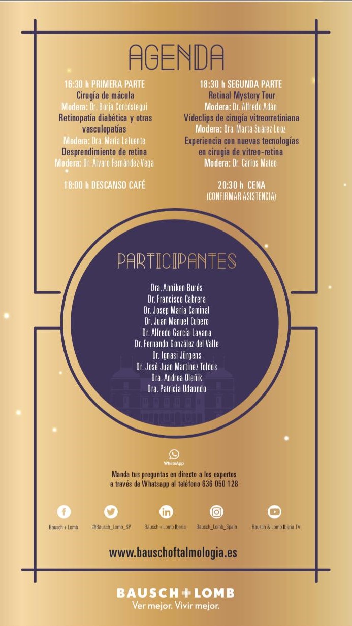 La Dra. Lafuente modera la mesa de “Retinopatía Diabética y otras Vasculopatías” en el ya clásico simposio de Bausch and Lomb dirigido por el Dr. Borja Corcostegui que se celebra el día previo al congreso